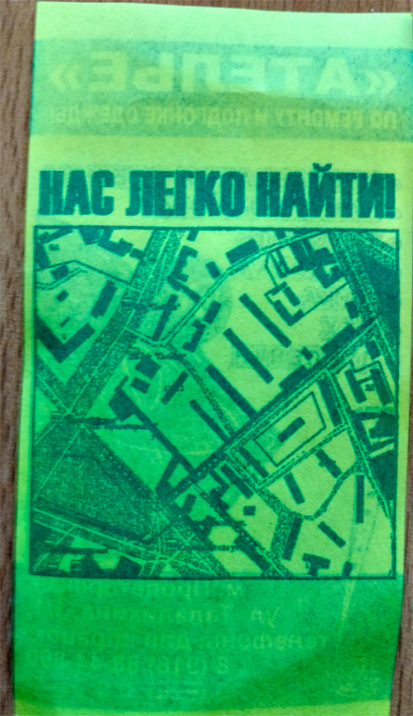 Евгению одно ателье прислало рекламную листовку. Их легко найти. Есть адрес. Название ателье. Даже карту приложили. Все понятно.