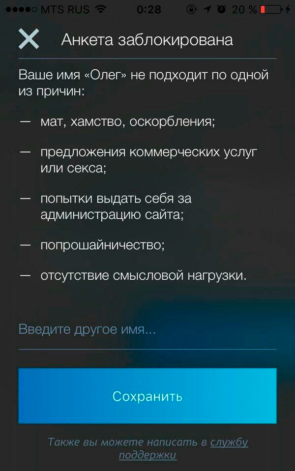 Скорее всего то сообщение выводится по любой причине если имя не прошло валидацию, в том числе если оно просто уже занято.