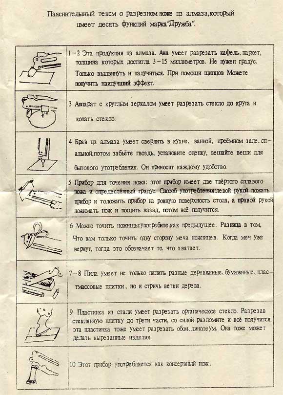 Впрочем, пояснительный текст к алмазному ножу, присланный Светланой, также свеж и безыскусен: