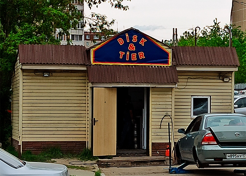 Когда хочется повыеживаться и в России-матушке написать вывеску непременно на английском, вздыхает Дмитрий, то лучше сначала все-таки выяснить, как это все правильно пишется, а то ведь вместо "Disks & Tires" получилась вывеска "Диск и уровень". Чего уровень-то, дубина? Алкоголя в крови?