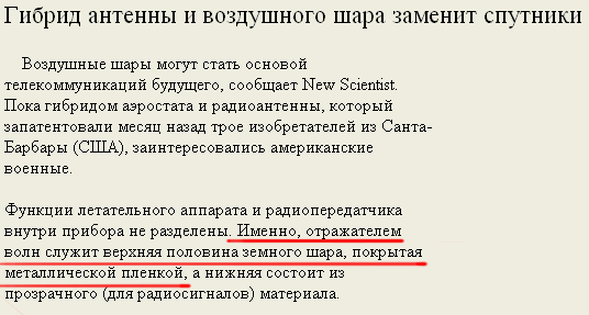 А что, хорошее изобретение. Покрываешь верхнюю половину земного шара металлической пленкой, после чего воздушный шар становится хорошей антенной - для нижний половины, где еще сохранилась жизнь. Именно? Именно!