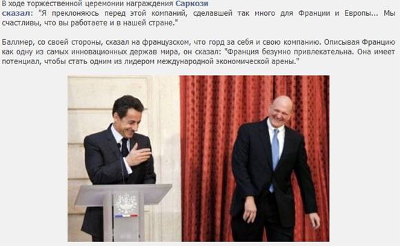 Все-таки приятно, замечает Олег, что и Саркози, и Балмер - такие шутники, такие шутники...