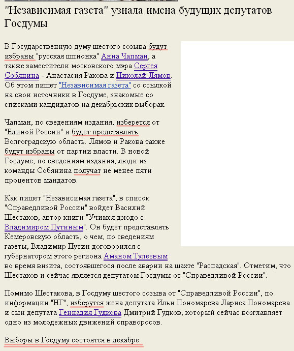 Все-таки приятно, считает Olaf, что в России ни от каких выборов ни черта не зависит. Сказали избрать эту мутную "шпионку" с сиськами - будет в Думе. Сказали избрать автора книжки "Товарищ Путин - лучший друг всех дзюдоистов" - тоже будет, куда денется. И все эти назначения под видом выборов состоятся в декабре. Ждем-ждем! Прям такая интрига - кровь в жилах стынет.