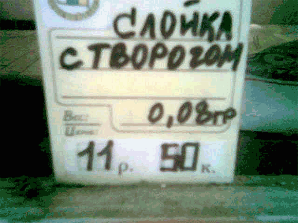 Кризис ударил и по слойке с творогом, грустит Владислав. Посмотрите, насколько она ужалась - аж до 8 сотых грамма. Теперь ее и на прилавке-то не разглядеть - слойка ушла на молекулярный уровень!