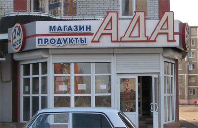 Григорий пытается понять, что за продукты предлагает магазин с таким названием.