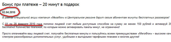 Компания "Мегафон", рассказал Кирилл, придумала интересный способ проводить различные акции. Объявляешь акцию со всякими бесплатными минутами, а потом сообщаешь о ней через пару месяцев. Красота!