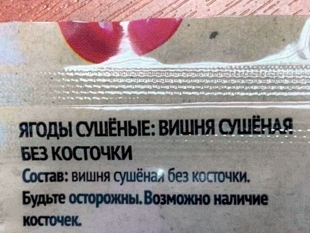 Про вишнёвые косточки - вполне нормальный дисклеймер.