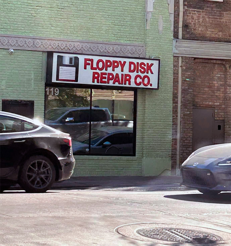 По ремонту флоппи-дисков - это прикол такой в Техасе. На самом деле там нет никакого ремонта, это бар "для своих" со входом через кодовый замок.