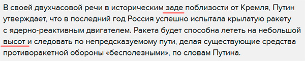 На "Эхе Москвы" были так воодушевлены речью Путина, рассказал Александр, что засунули президента куда-то не туда. И даже не объяснили, что это за исторический зад такой. Но зато хорошо, что у ракеты на небольшой высот будет непредсказуемый пут.