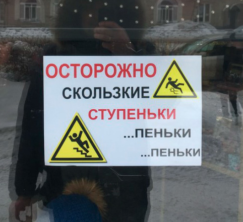 - Гена, тут жиром смазаны ступеньки! пеньки... пеньки...