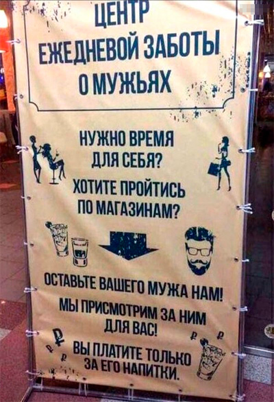 Не хочешь чай для пиписька, не хочешь таскаться с мужем по магазинам - оставь мужа в центре ежедневной заботы, это очень удобно!
