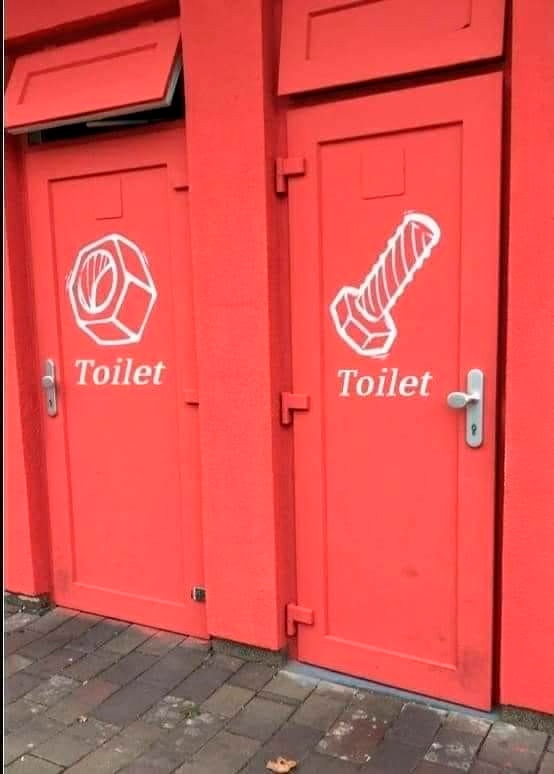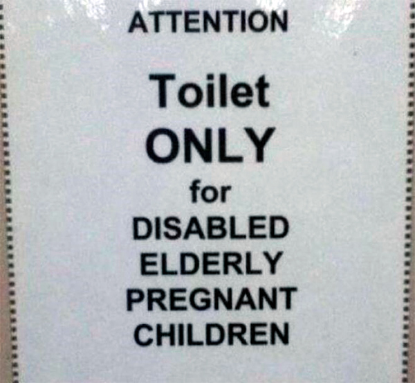 Какие причудливые бывают туалеты, удивляется Кевин. Надпись: "Туалет только для пожилых беременных детей с инвалидностью".