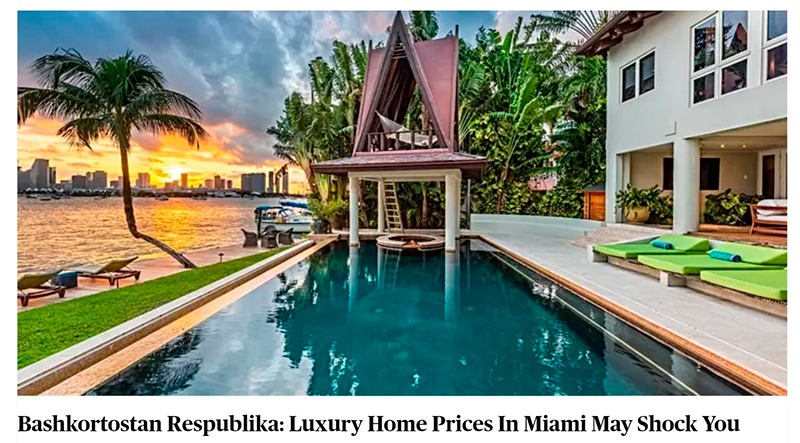 Тем временем в Башкортостане предупреждают о том, что цены на элитное жилье в Майами могут вас шокировать. Ну, мы счастливы, что в Башкортостане о нас так беспокоятся, нам приятно.