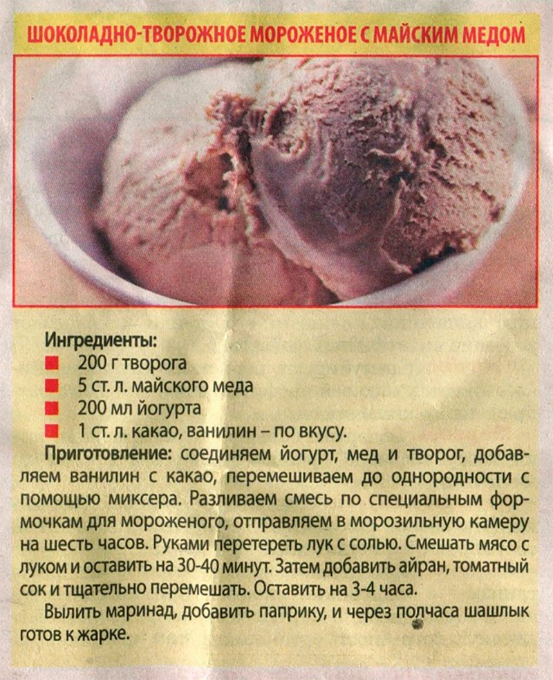 Антон с удовольствием делится со всеми рецептом шоколадно-творожного мороженого с майским медом. Он пробовал делать - прям неземное удовольствие!
