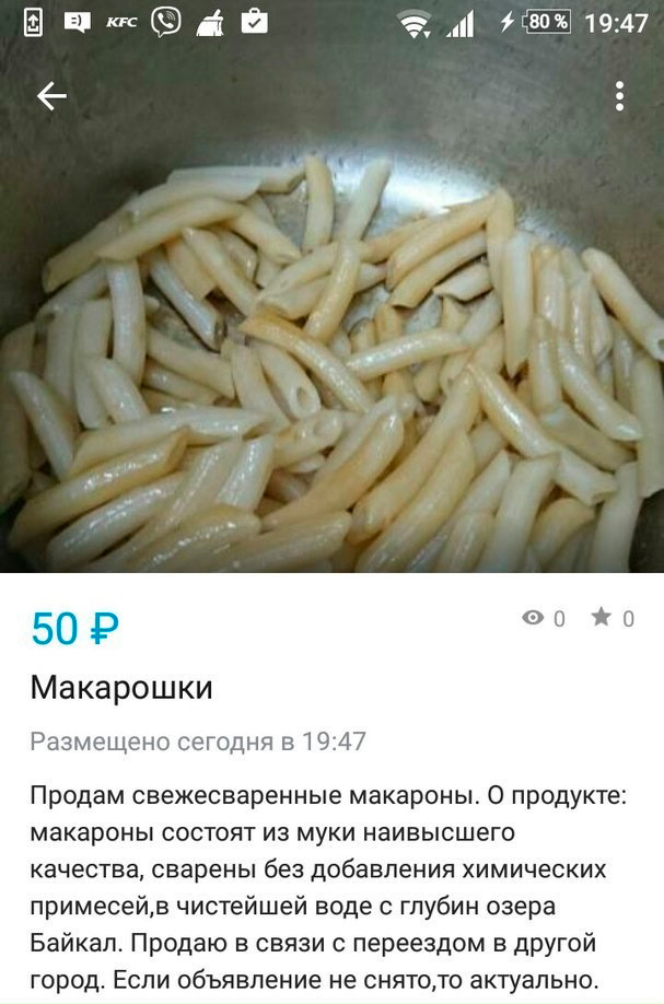 А чего вы ржете с объявления про макарошки? Макароны - это, между прочим, деликатес!