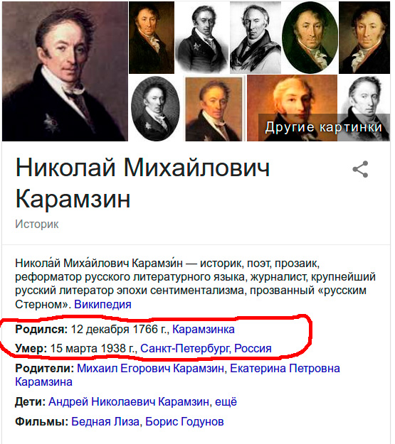 Статья в Википедии в последний раз правилась в феврале, и совсем по другой причине - так что к ней точно вопросов не может быть. Вот если Гугл лажанулся - но как? Особенно если вспомнить, что в 1938 году в Санкт-Петербурге из Российской империи никто не мог умирать в принципе.