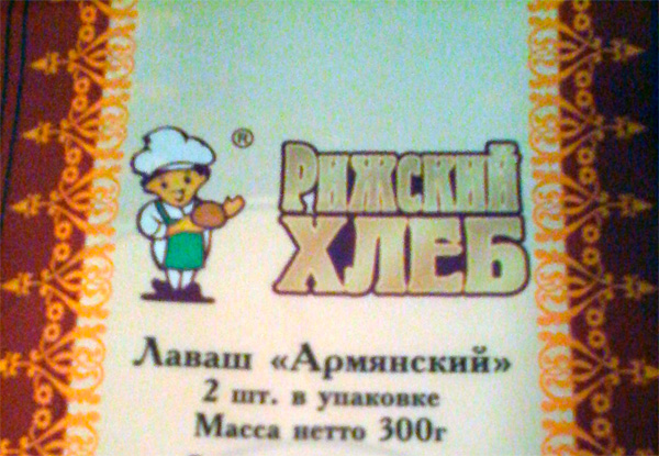 Второе про армянский лаваш. Ну фирма называется рижский хлеб, да, а армянский - это тип лаваша, такой, тонкий, как блин. Никого же не удивляет, пошехонский сыр не из Пошехони, голландский не из Голландии?