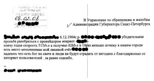 Мужик надеется, что есть бог на свете - то есть губернатор, который из полумегабитки выжмет скорость 500 мегов в секунду. А бог, кстати, есть, он отреагировал: