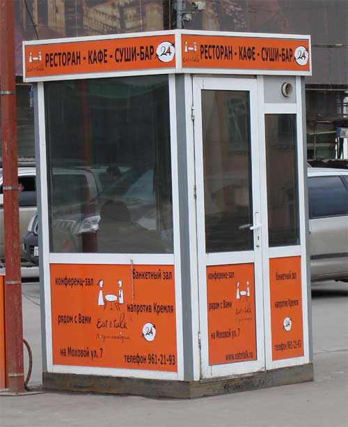 В Москве, сокрушается Debugger, места так мало, а аренда так дорога, что приходится вот такую будочку делать и суши-баром, и кафе, и рестораном, и банкетным залом, ну и туалетом, ясный пень.