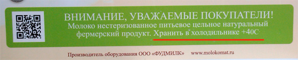 Марат прислал табличку, висящую на автомате, торгующем фермерским молоком. Вы уж правильно храните молочко, ладно?
