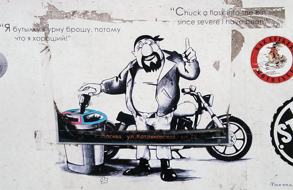 Волшебница Шалотт прислала плакат, который висит на Смотровой площадке в Москве. Плакат направлен к байкерам, в том числе иностранным. Которые плачут от счастья, увидев этот шедевр.
