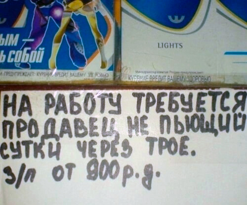 Вполне логичное объявление: сутки работает, трое суток пьет. Нормальный рабочий график.