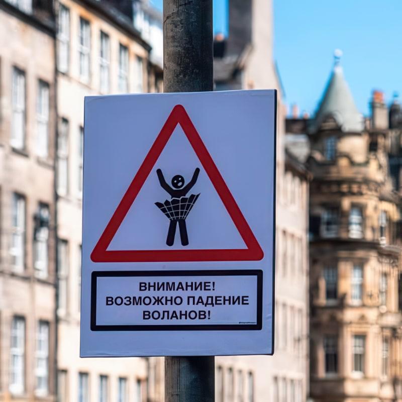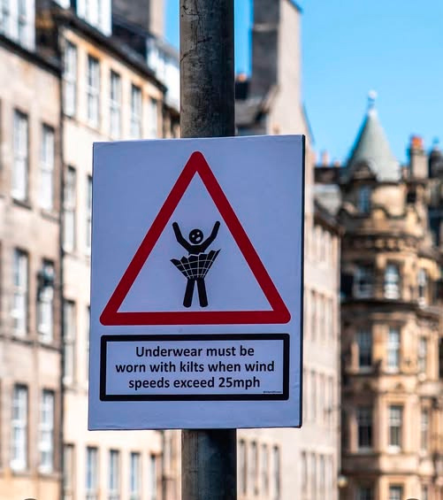 И знак этот из Шотландии, очевидно, потому что там просят не просто надевать трусы во время ветра, а под килты, ибо традиционно под килтами ничего нет.