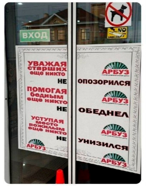 Магазин "Арбуз", вздыхает Юрий, решил поделиться типа как умными мыслями, в результате чего "Арбуз" опозорился, обеднел и унизился. Даже жалко его как-то...