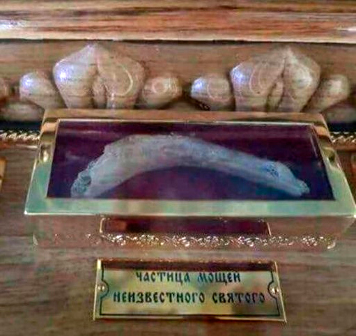Прям как в том анекдоте, считает Антон: "Памятник неизвестному солдату Рабиновичу. А почему "неизвестному"? Да потому что неизвестно, был ли он солдатом". Так и тут. Неизвестно чья кость неизвестного святого. Но вообще непонятно, с чего попы вдруг так застеснялись. Написали бы "Частица мощи святого Андрея Полузванного", и все дела!