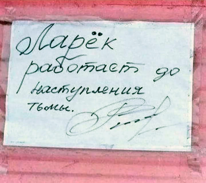 Была ж где-то фотография объявления "Не работает ларёк, потому что Рагнарёк" - вот тут, похоже, предыдущий статус зафиксирован.