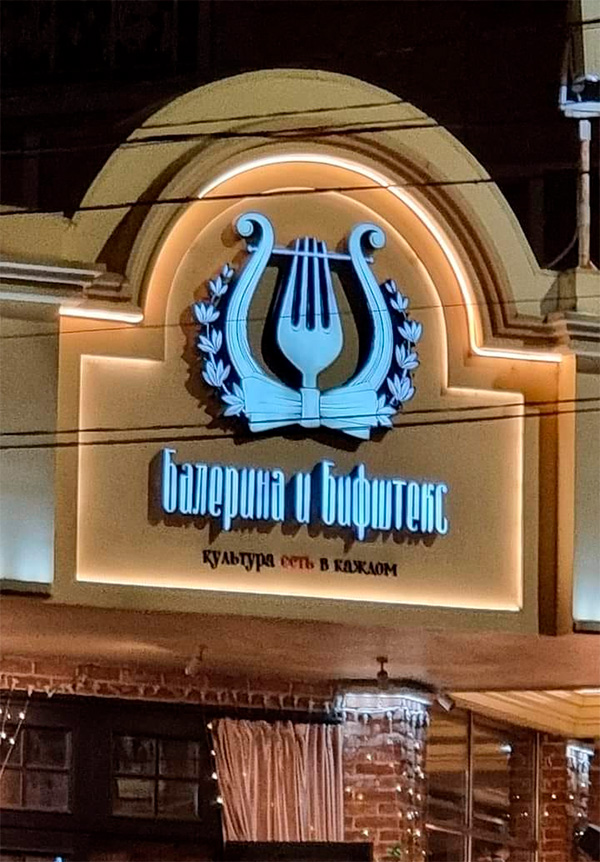 Балерину и бифштекс у них символизирует вилка и арфа.