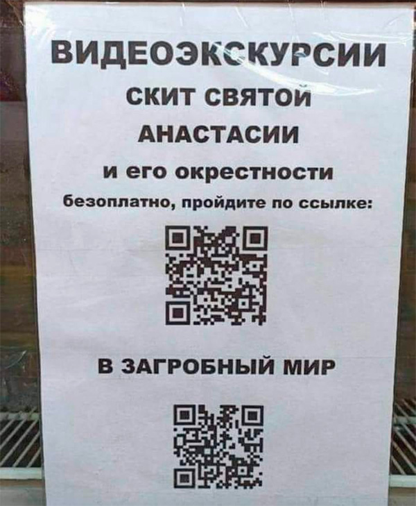 Хорошая реклама не долбит в упор, она привлекает внимание и интригует. А QR отлично считывается даже с фотографии... 😉