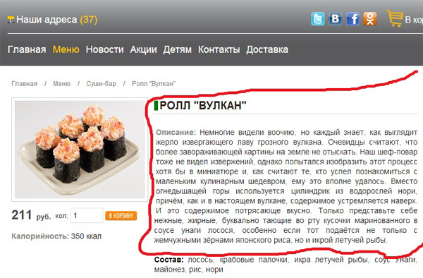 Описание ролла "Вулкан" в ресторанчике "Му-му", рассказал Макс, впечатляет безмерно. В отличие от самого ролла.