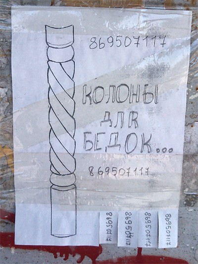 А вот кому колоны для бедок, завлекает Евгений. Что? Не знаете, что такое бедки? Вы еще скажите, что знаете, что такое колоны...