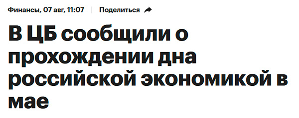 Какой милый заголовок на РБК, считает A.P. То есть российская экономика в мае достигла дна, а теперь это дно преодолела, отправляясь еще ниже к новым глубинам? Они хоть сами понимают, что вообще несут?!!