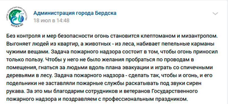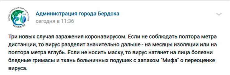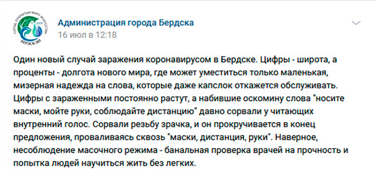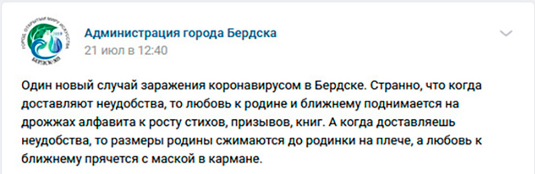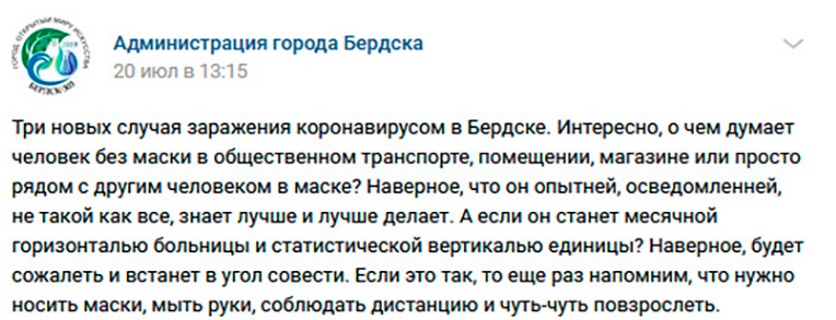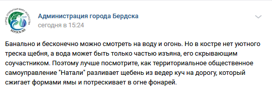 Администрация города Бердска, рассказала Наталья, жжот - в хорошем смысле - на официальной странице администрации города в VK.