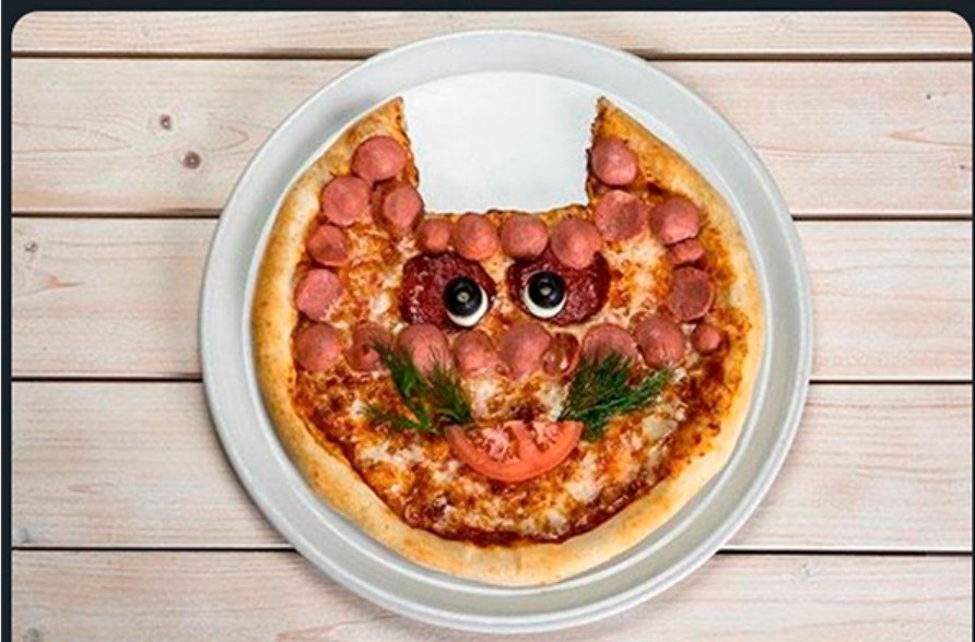 Вот такая творческая пицца. Кот Бублик поначалу хотел объявить подобное страшным кощунством, но потом, остыв, вынужден был признать, что получилось очень забавно.