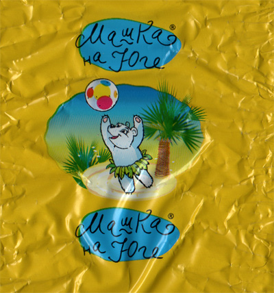 А вот тоже креативщики зажигают, рассказал Олег. Мысль "Мишка на юге" - она, в общем, вполне хорошая, однако веселый белый медвежонок вдруг превратился в какую-то кошмарную "Машку".