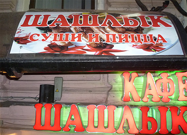 Анна приглашает всех в замечательное кафе, расположенное в культурной столице страны. Шашлык-хаус - лучшие традиции шашлыка, шаурмы и кутабов в чисто британском духе, ну и также замечательные традиции Кавказа в приготовлении суши и пиццы. В меню напитков - еврейский сакойшех, немецкий шнапс, французский кальвадос и испанская сангрия. Вот такой вот мультикультур-мультишмультур.