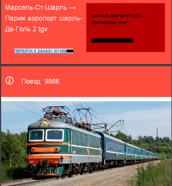 Артем на One-two trip взял билет на поезд от Марселя до аэропорта Парижа. И вот что ему выдали в заказе - видать тот самый поезд.