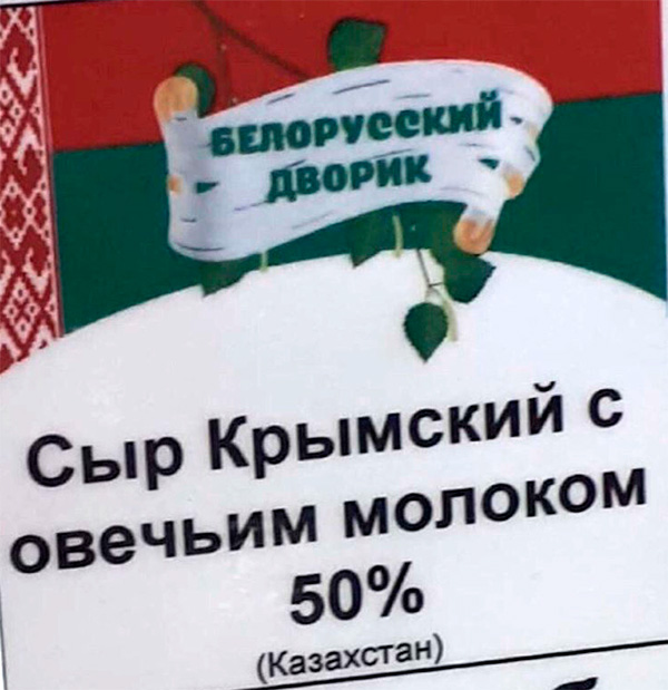Вот они, чудеса глобализации, удивляется Мират. Белорусский дворик представляет сыр крымский, сделанный в Казахстане. Впрочем, насколько помнится, в Беларуси уже производили настоящий испанский хамон. Из утки. Хорошо хоть не из тыквы.