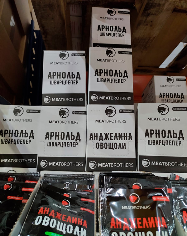 Какой потрясающий креатив у этих мясных братков, удивляется Алексей. Арнольд Шварцпеппер, Анджелина овощоли - а чего не Мерайа карри и не Лучано поссолини?