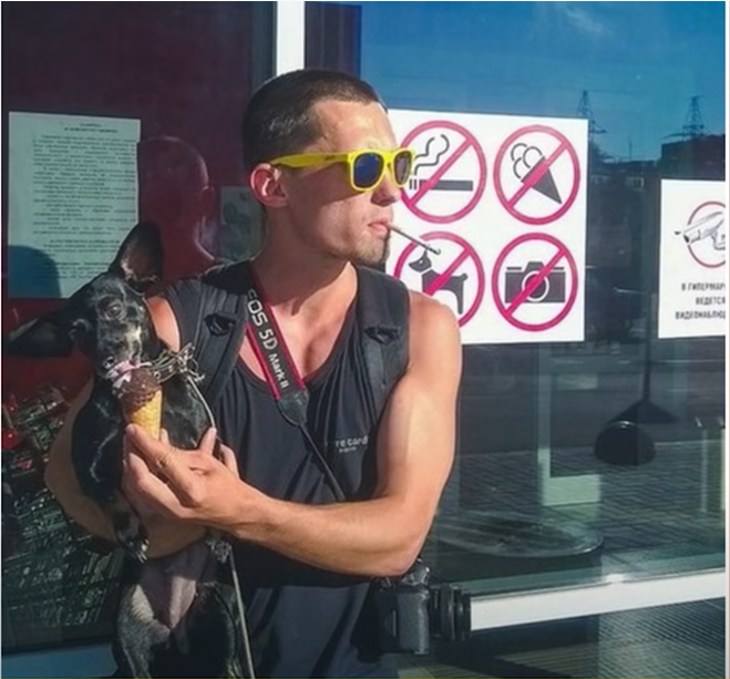 Котик не только не грустный, он еще пьяный, злой и косой.