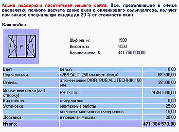 Приятно то, что если распечатать этот расчет, то можно получить аж 20% скидку! Торопитесь, не упустите свой шанс!