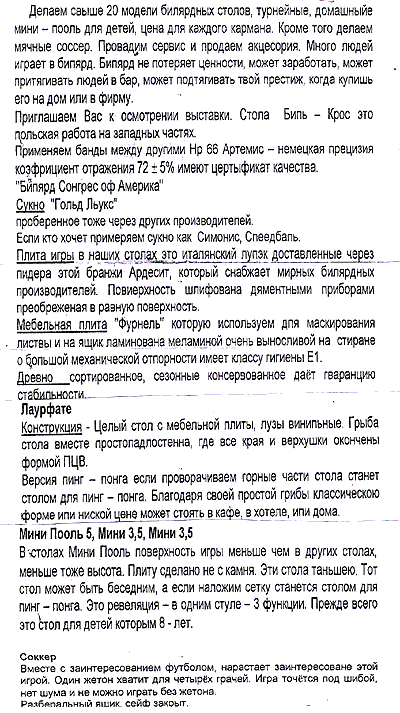 VanDerKlopp решил купить домой бильярд и стал тщательно изучать рекламные листочки. Как вы думаете, купил он его или нет?