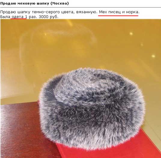 Светлана обнаружила в Интернете объявление о продаже классной шапочки. Писец какая классная. Вязаная. Норка вязала. Одели шапочку один-единственный раз - в полосатые носочки, штанишки и курточку. Так что налетай!