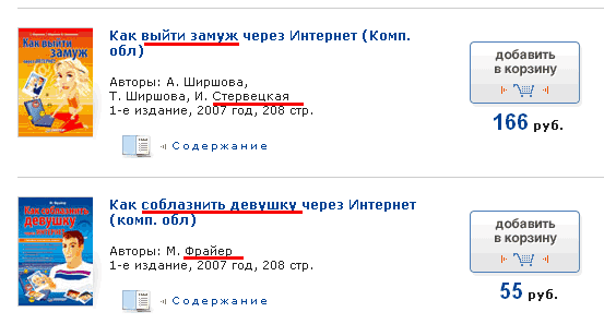 Всегда забавно, замечает Elenaki, когда фамилия автора много говорит о самом пособии. Стерва учит, как выйти замуж, а фраер - как охмурять девушек.