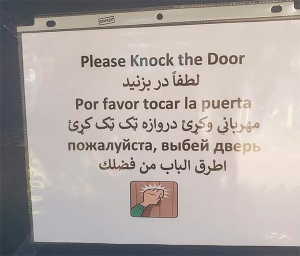 Ольга сфотографировала это в Калифорнии, где уж по крайней мере по-английски и по-испански могли бы написать правильно. На русских-то все давно махнули рукой: все равно выбьют, знают они этих русских.