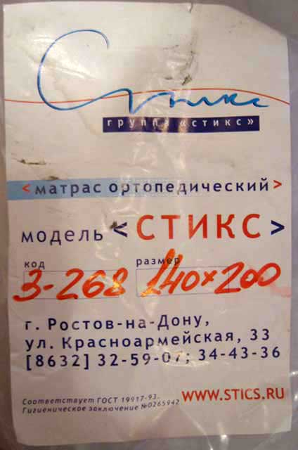 Матрас ортопедический "Стикс" - это пять баллов, считает Алексей.