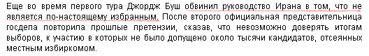 Журналисты "Газеты.ру", радуется Tupoi, продолжают курить высокоэффективную травку, а Буш упрекает Иран в том, что его, американского президента, избрали нелегитимно.